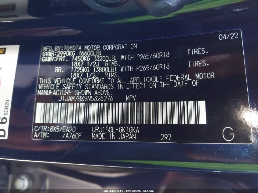 Цвет СинийЦилиндры 8Привод Полный приводVIN JTJAM7BX9N5328276Состояние Заводится и едет (проверено)Повреждения Передняя или задняя AutoRIA