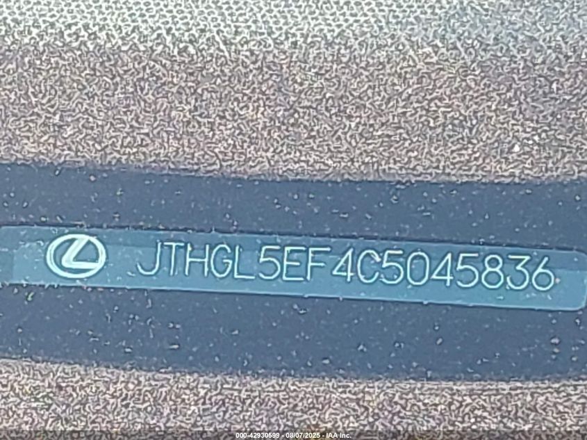 Цвет ЧерныйЦилиндры 8Привод Задний приводVIN JTHGL5EF4C5******Состояние НеизвестноПовреждения ЗадняяДата аукциона 2025-09-30