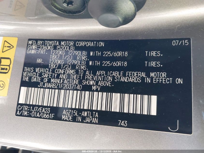 Цвет СеребряныйЦилиндры 4Привод Полный приводVIN JTJBARBZ1F2037140Состояние СтационарноПовреждения Передняя или задняя AutoRIA