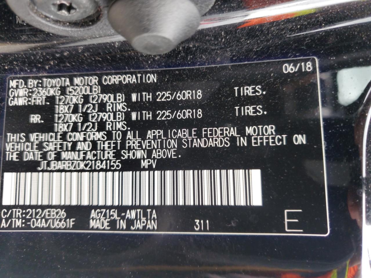Цвет ЧерныйЦилиндры 4Привод Полный приводVIN JTJBARBZ0K2184155Состояние НеизвестноПовреждения Передняя или задняяДата аукциона 2025-08-13