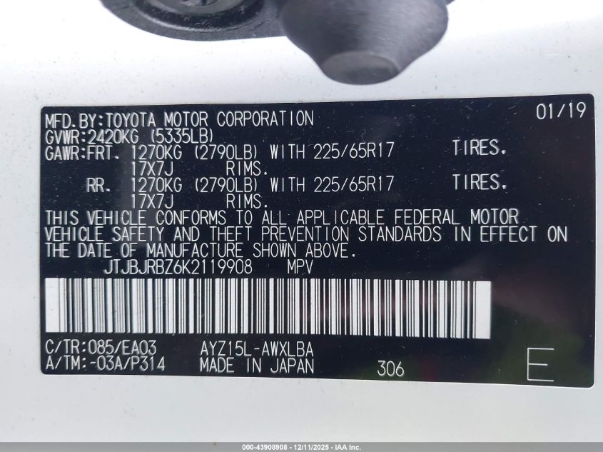 Цвет БелыйЦилиндры 4Привод Полный приводVIN JTJBJRBZ6K2119908Состояние СтационарноПовреждения Передняя или задняя AutoRIA