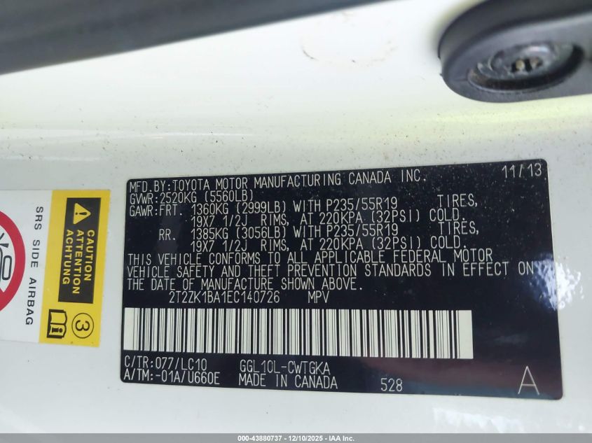 Цвет БелыйЦилиндры 6Привод Передний приводVIN 2T2ZK1BA1EC140726Состояние Заводится и едет (проверено)Повреждения Передняя или задняя AutoRIA