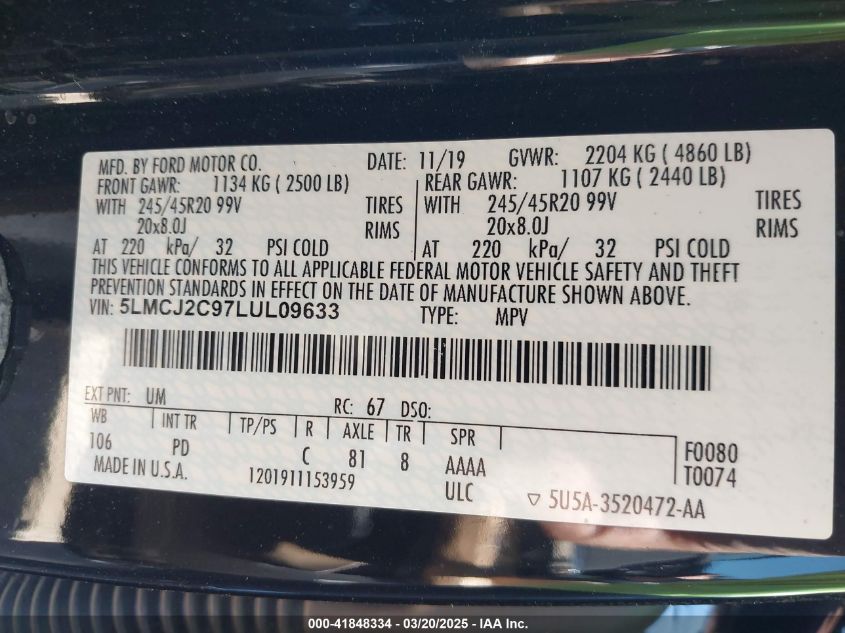 2020 LINCOLN CORSAIR 2020 року Бензин, 2.0, Передний привод, vin - 5LMCJ2C97LU****** из США
