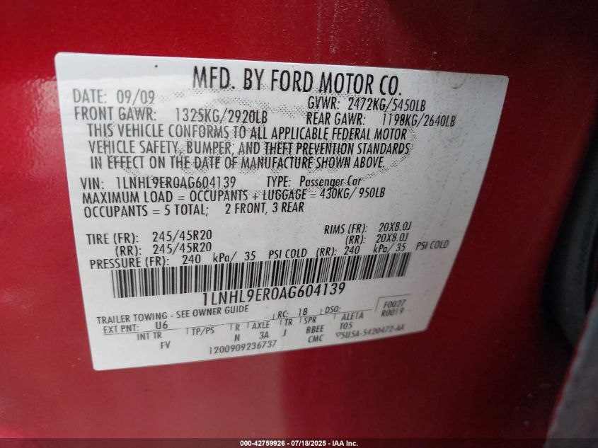 2010 LINCOLN MKS