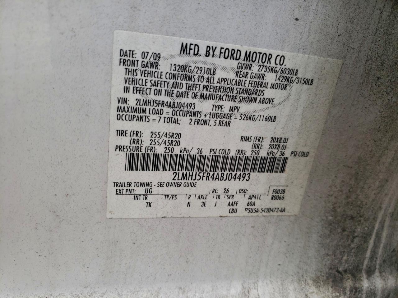 2010 LINCOLN MKT 2010 року Бензин, 3.7, , vin - 2LMHJ5FR4ABJ04493 из США