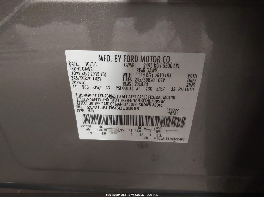 2016 LINCOLN MKX RESERVE