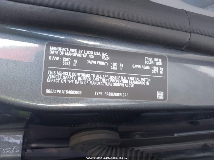 2025 LUCID AIR 2025 року Электрический, U, Задний привод, vin - 50EA1PGA1SA003636 из США