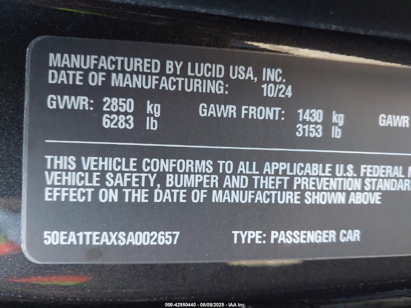 2025 LUCID AIR 2025 року Электрический, U, Полный привод, vin - 50EA1TEAXSA****** из США