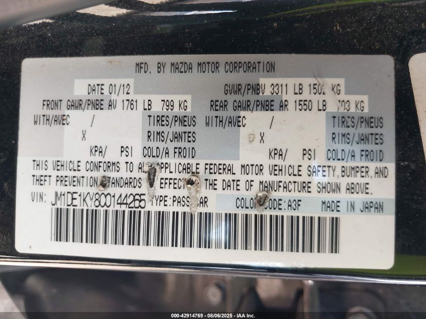 Цвет ЧерныйЦилиндры 4Привод Передний приводVIN JM1DE1KY8C0******Состояние НеизвестноПовреждения Передняя и задняяДата аукциона 2025-09-08