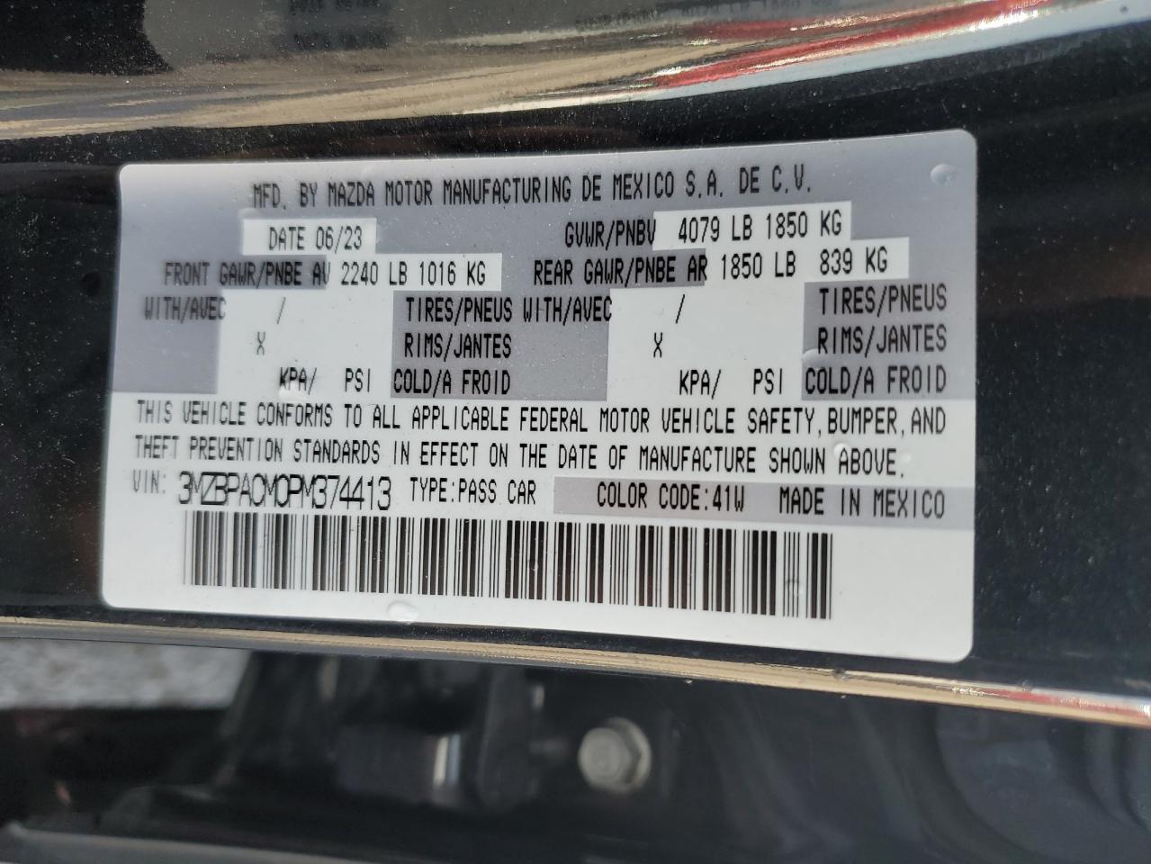 2023 MAZDA 3 2023 року Бензин, 2.5, , vin - 3MZBPACM0PM374413 из США
