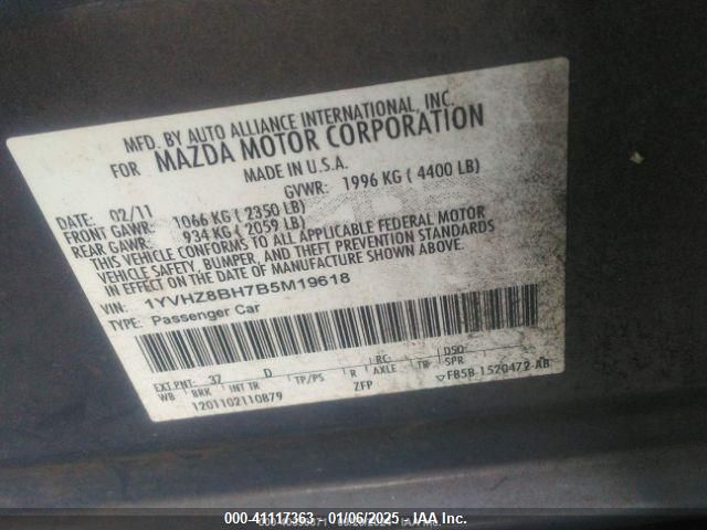 2011 MAZDA 6 2011 року Бензин, 2.5, Передний привод, vin - 1YVHZ8BH7B5M19618 из США