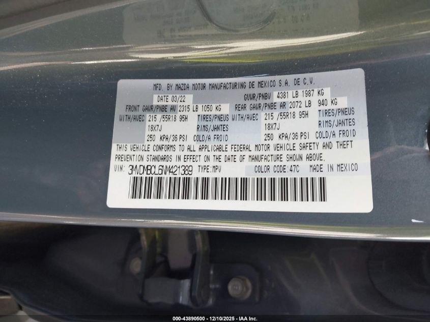 2022 MAZDA CX-30 2022 року Бензин, 2.5, Полный привод, vin - 3MVDMBCL6NM421389 из США