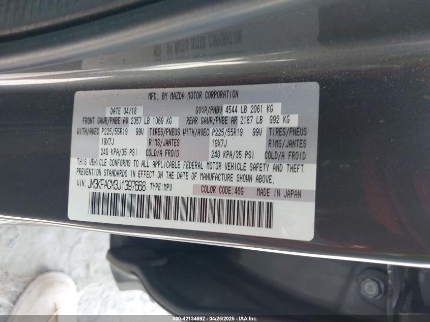 Цвет СерыйЦилиндры 4Привод Передний приводVIN JM3KFACM3J1******Состояние НеизвестноПовреждения Передняя или задняяДата аукциона 2025-09-08