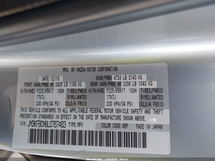 2020 MAZDA CX-5 2020 року Бензин, 2.5, Полный привод, vin - JM3KFBCM8L0767463 из США