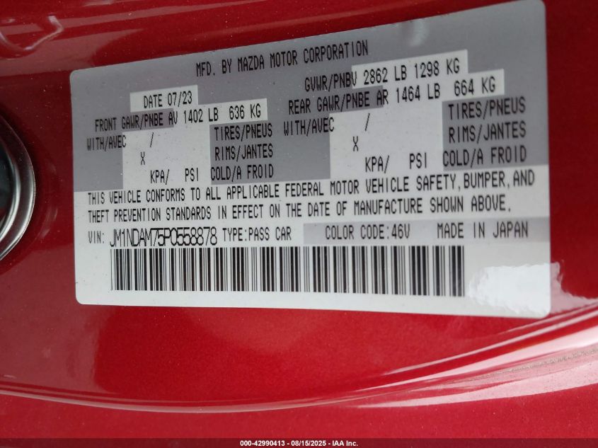 2023 MAZDA MX-5 2023 року Бензин, 2.0, Задний привод, vin - JM1NDAM75P0****** из США