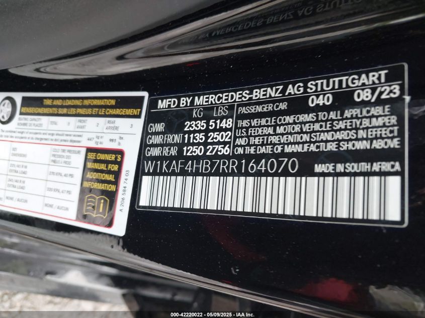 Цвет ЧерныйЦилиндры 4Привод Полный приводVIN W1KAF4HB7RR******Состояние НеизвестноПовреждения Передняя и задняяДата аукциона 2025-07-01