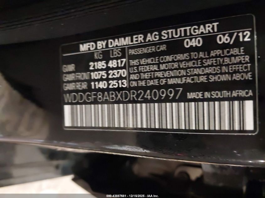 2013 MERCEDES-BENZ C-CLASS 2013 року Бензин, 3.5, Полный привод, vin - WDDGF8ABXDR240997 из США