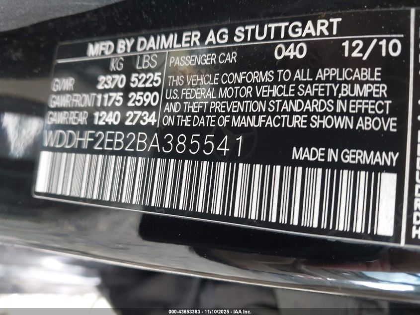 2011 MERCEDES-BENZ E-CLASS 2011 року Дизель, 3.0, Задний привод, vin - WDDHF2EB2BA385541 из США