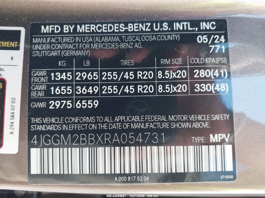 2024 MERCEDES-BENZ EQE SUV 2024 року Электрический, U, , vin - 4JGGM2BBXRA054731 из США