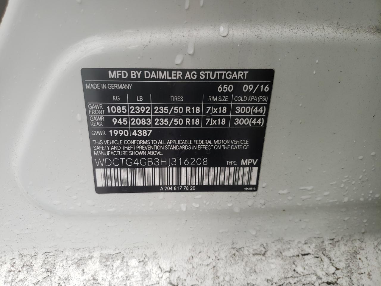 Цвет БелыйЦилиндры 4Привод Полный приводVIN WDCTG4GB3HJ316208Состояние НеизвестноПовреждения НизДата аукциона 2025-12-05 AutoRIA