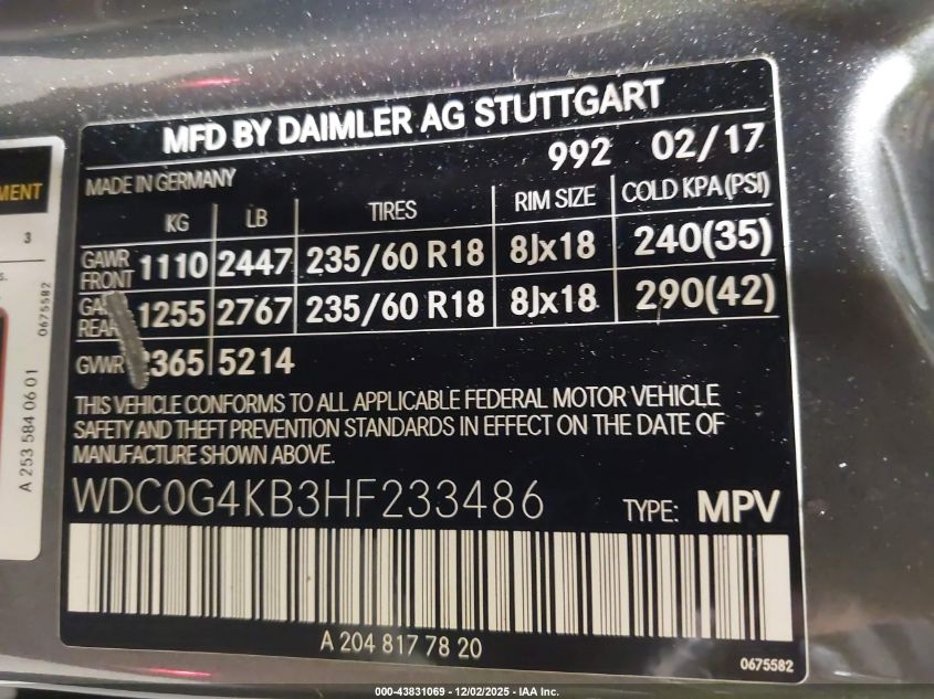 2017 MERCEDES-BENZ GLC-CLASS 300