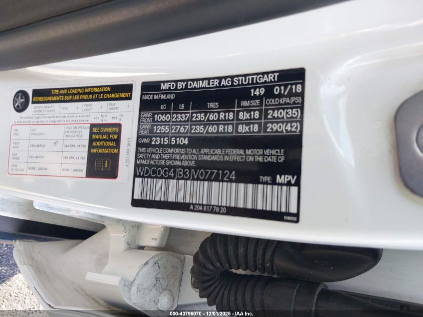 Цвет БелыйЦилиндры 4VIN WDC0G4JB3JV077124Состояние Заводится и едет (проверено)Повреждения Задняя AutoRIA