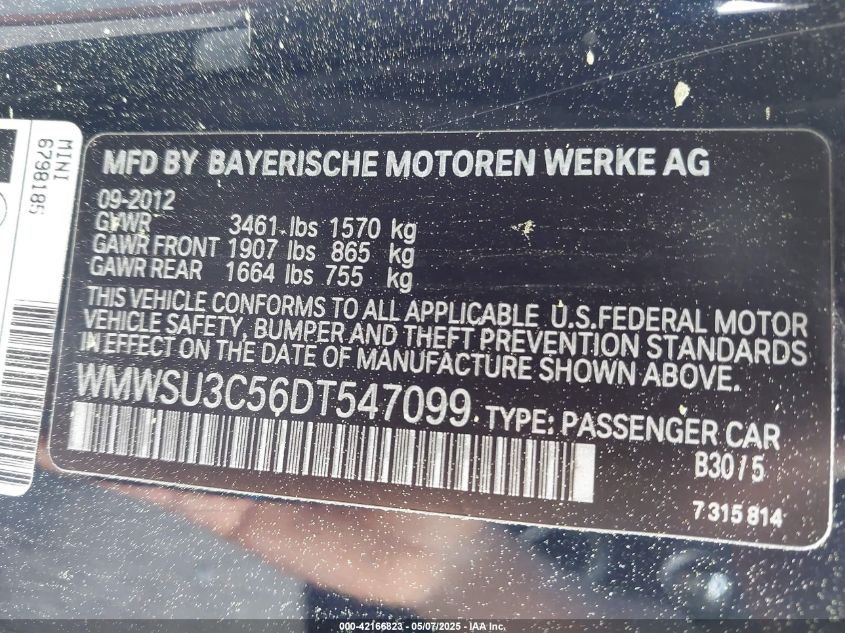 2013 MINI HARDTOP 2013 року Бензин, 1.6, Передний привод, vin - WMWSU3C56DT****** из США