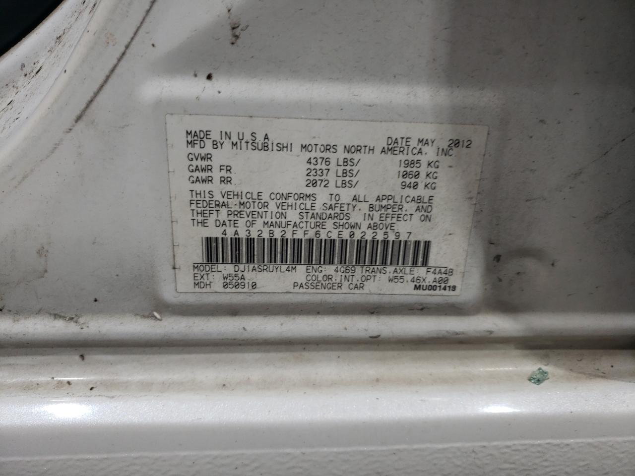 2012 MITSUBISHI GALANT 2012 року Бензин, 2.4, , vin - 4A32B2FF6CE022597 из США
