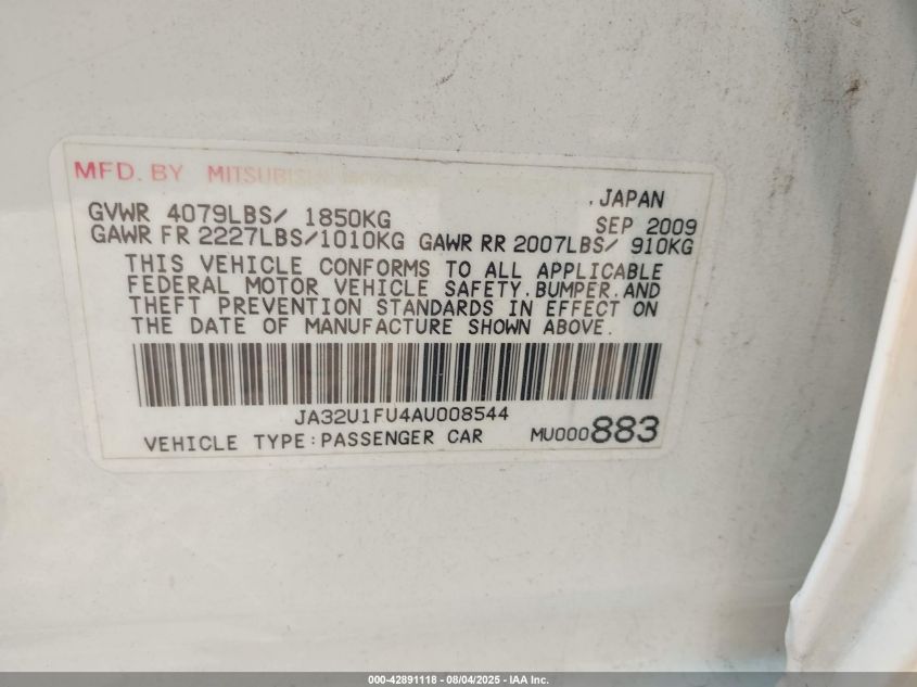 2010 MITSUBISHI LANCER 2010 року Бензин, 2.0, Передний привод, vin - JA32U1FU4AU****** из США
