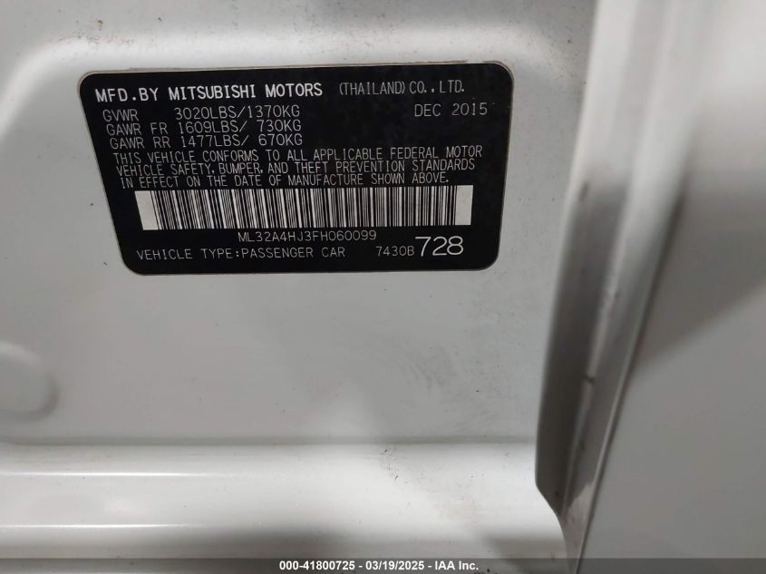 2015 MITSUBISHI MIRAGE ES