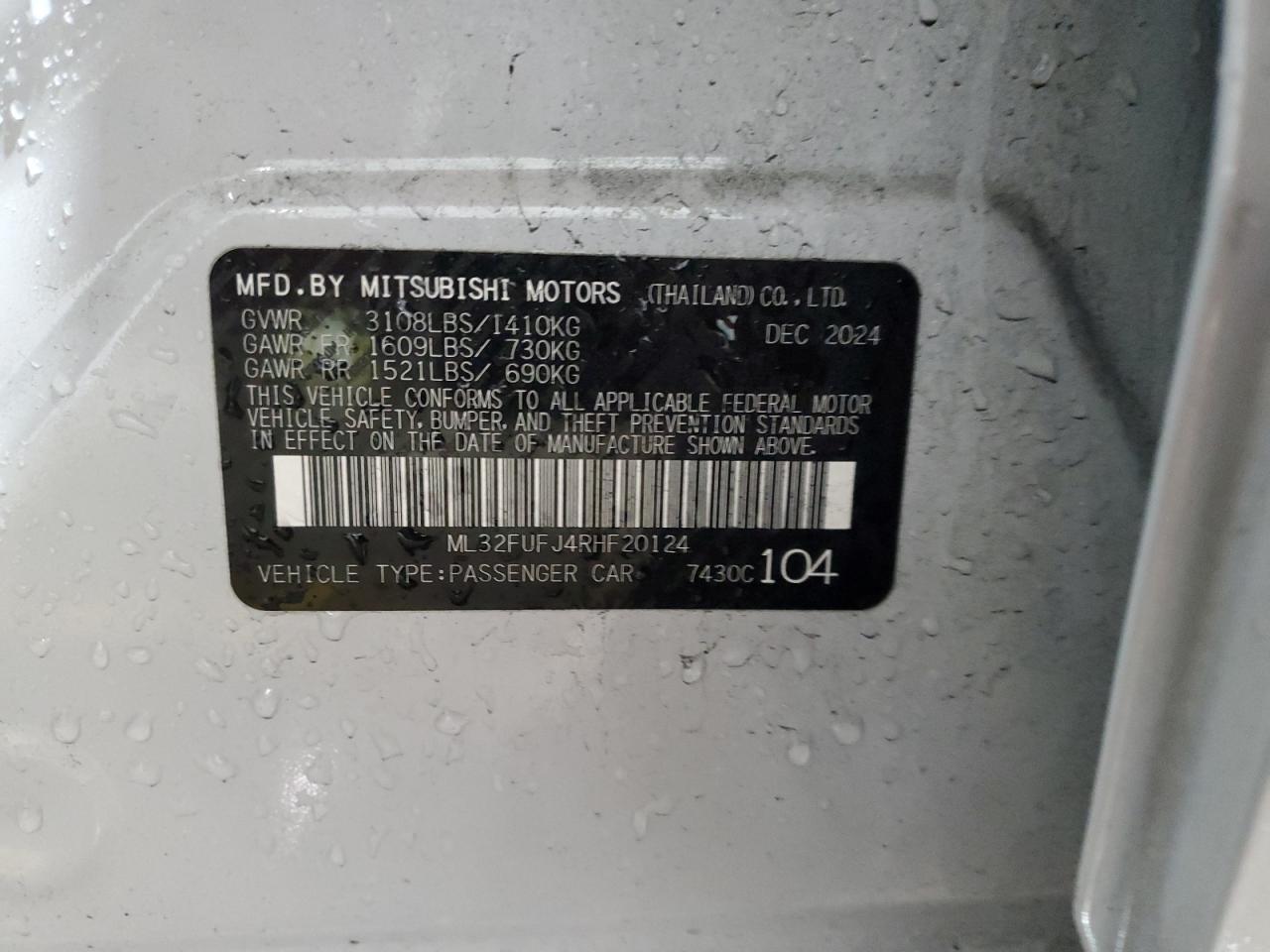 2024 MITSUBISHI MIRAGE 2024 року Бензин, 1.2, , vin - ML32FUFJ4RHF20124 из США