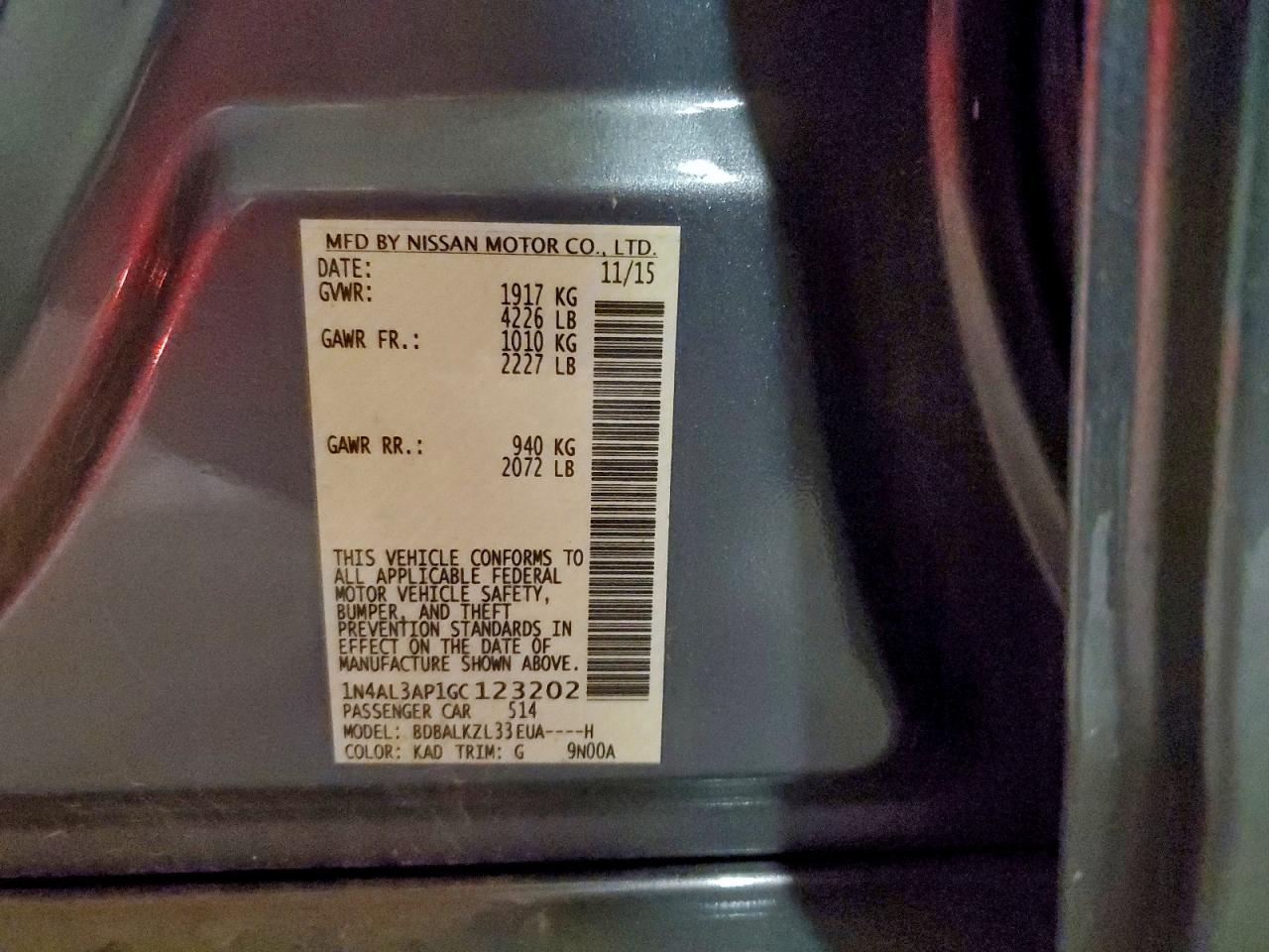 Цвет СерыйЦилиндры 4VIN 1N4AL3AP1GC123202Состояние Заводится и едет (проверено)Повреждения Задняя AutoRIA