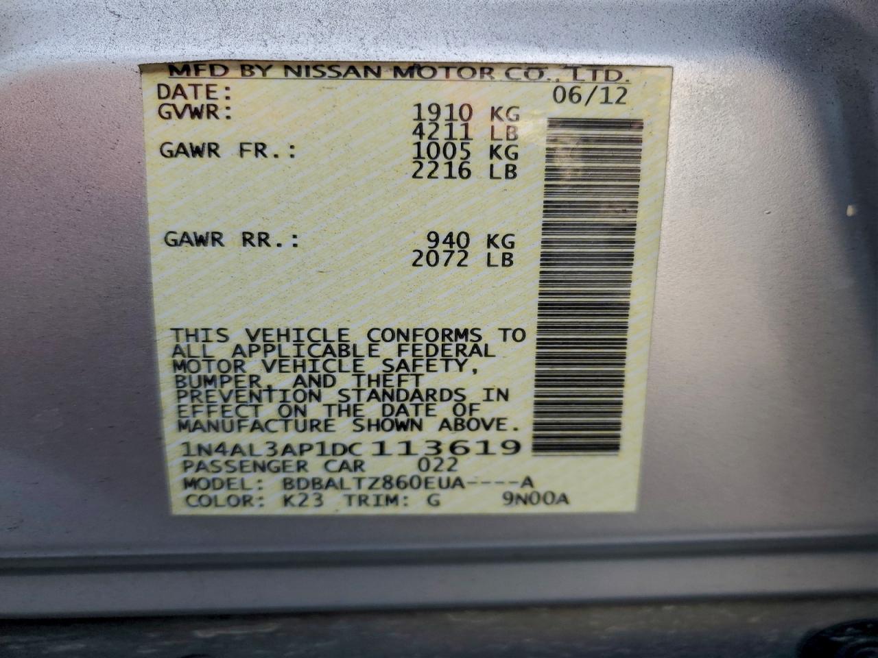 Цвет СеребряныйЦилиндры 4VIN 1N4AL3AP1DC113619Состояние Заводится и едет (проверено)Повреждения По бокам AutoRIA