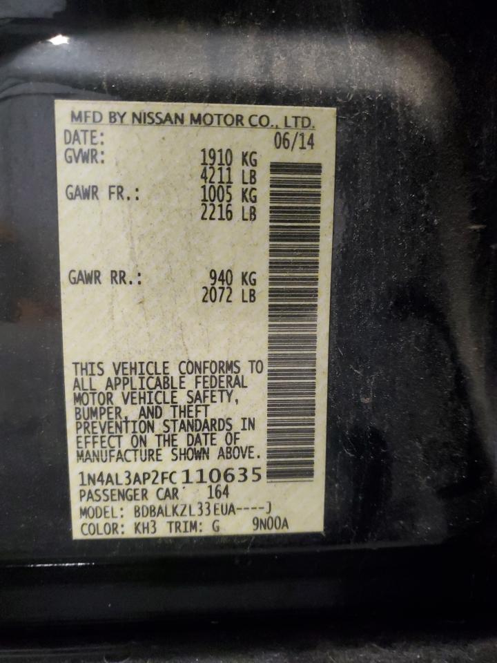 2015 NISSAN ALTIMA 2015 року Бензин, 2.5, , vin - 1N4AL3AP2FC110635 из США