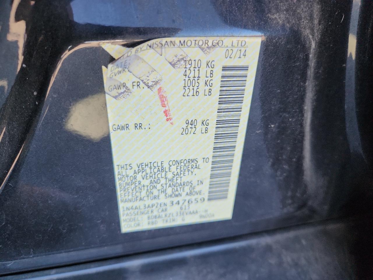 2014 NISSAN ALTIMA 2014 року Бензин, 2.5, , vin - 1N4AL3AP2EN347659 из США