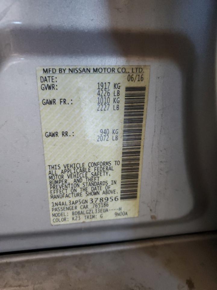 2016 NISSAN ALTIMA 2016 року Бензин, 2.5, , vin - 1N4AL3AP5GN378956 из США