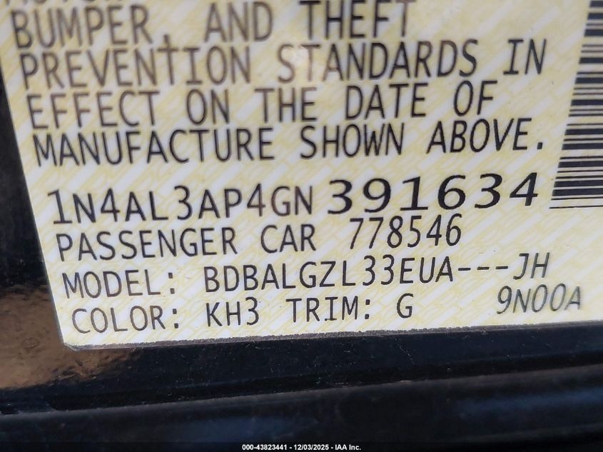 2016 NISSAN ALTIMA 2016 року Бензин, 2.5, Передний привод, vin - 1N4AL3AP4GN391634 из США