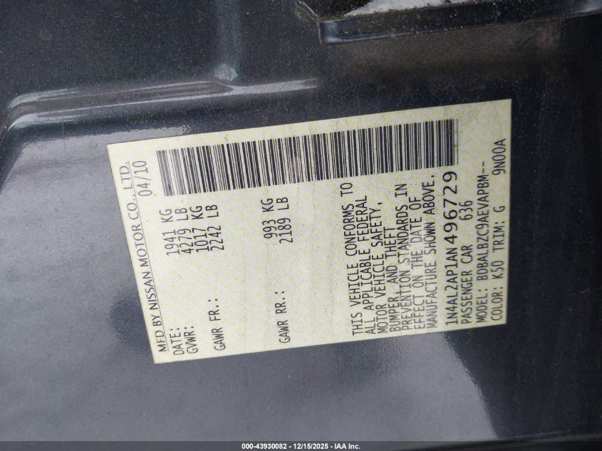 2010 NISSAN ALTIMA S