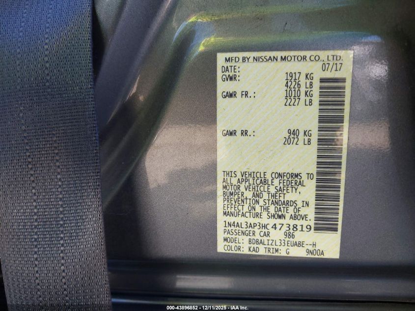 2017 NISSAN ALTIMA 2.5