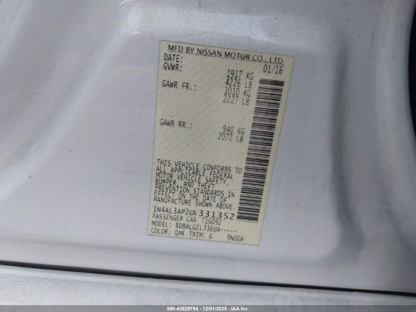 2016 NISSAN ALTIMA 2.5
