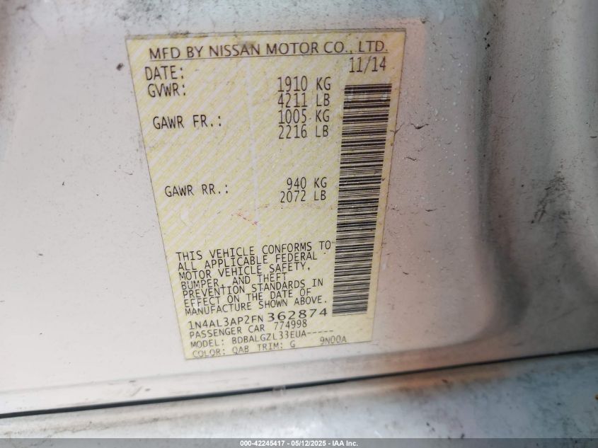2015 NISSAN ALTIMA 2.5