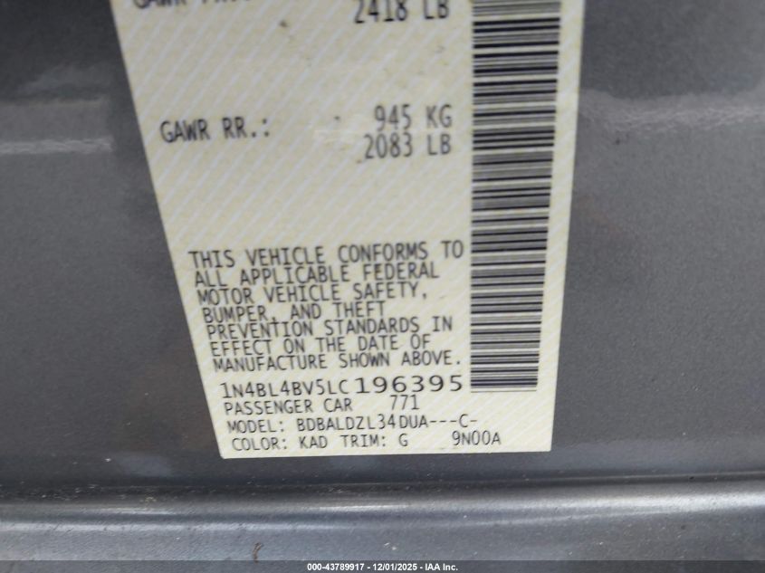 Цвет СерыйЦилиндры 4Привод Передний приводVIN 1N4BL4BV5LC196395Состояние Заводится и едет (проверено)Повреждения Задняя правая AutoRIA