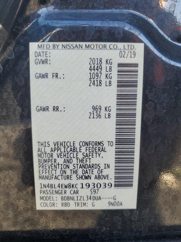 2019 NISSAN ALTIMA 2019 року Бензин, 2.5, Полный привод, vin - 1N4BL4EW8KC193039 из США