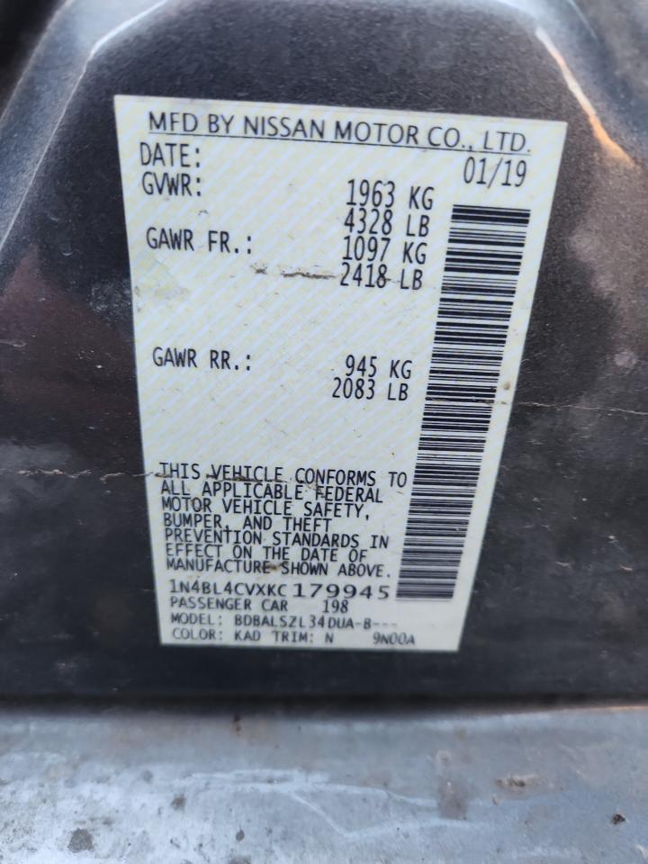 2019 NISSAN ALTIMA 2019 року Бензин, 2.5, , vin - 1N4BL4CVXKC179945 из США