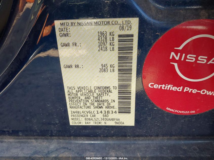 2020 NISSAN ALTIMA 2020 року Бензин, 2.5, Передний привод, vin - 1N4BL4CV6LC143834 из США