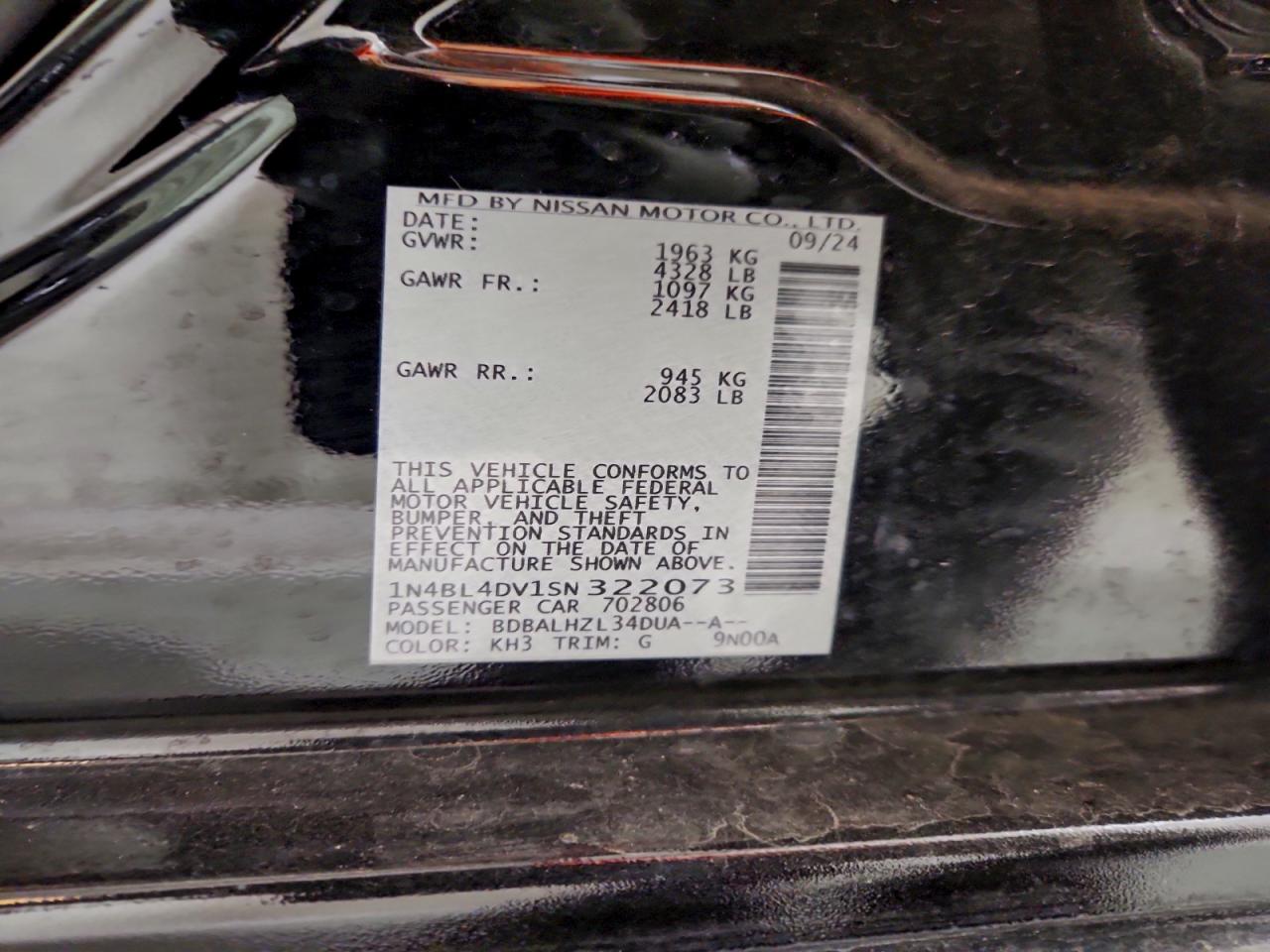 Цвет ЧерныйЦилиндры 4VIN 1N4BL4DV1SN322073Состояние НеизвестноПовреждения Передняя или задняя