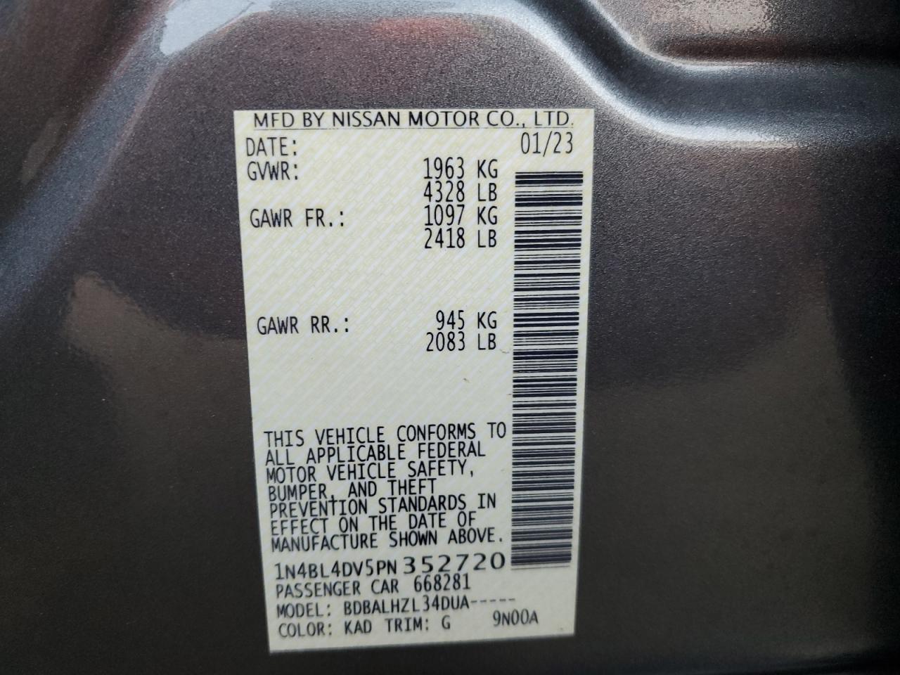 2023 NISSAN ALTIMA 2023 року Бензин, 2.5, , vin - 1N4BL4DV5PN352720 из США