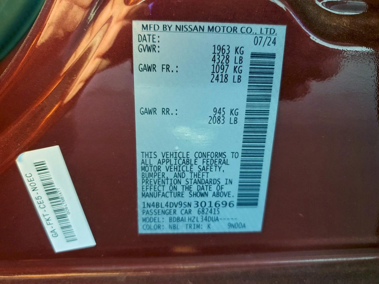 Цвет КрасныйЦилиндры 4VIN 1N4BL4DV9SN301696Состояние Заводится и едет (проверено)Повреждения Задняя