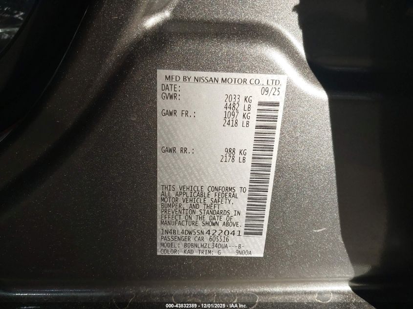 2025 NISSAN ALTIMA 2025 року Бензин, 2.5, Полный привод, vin - 1N4BL4DW5SN422041 из США