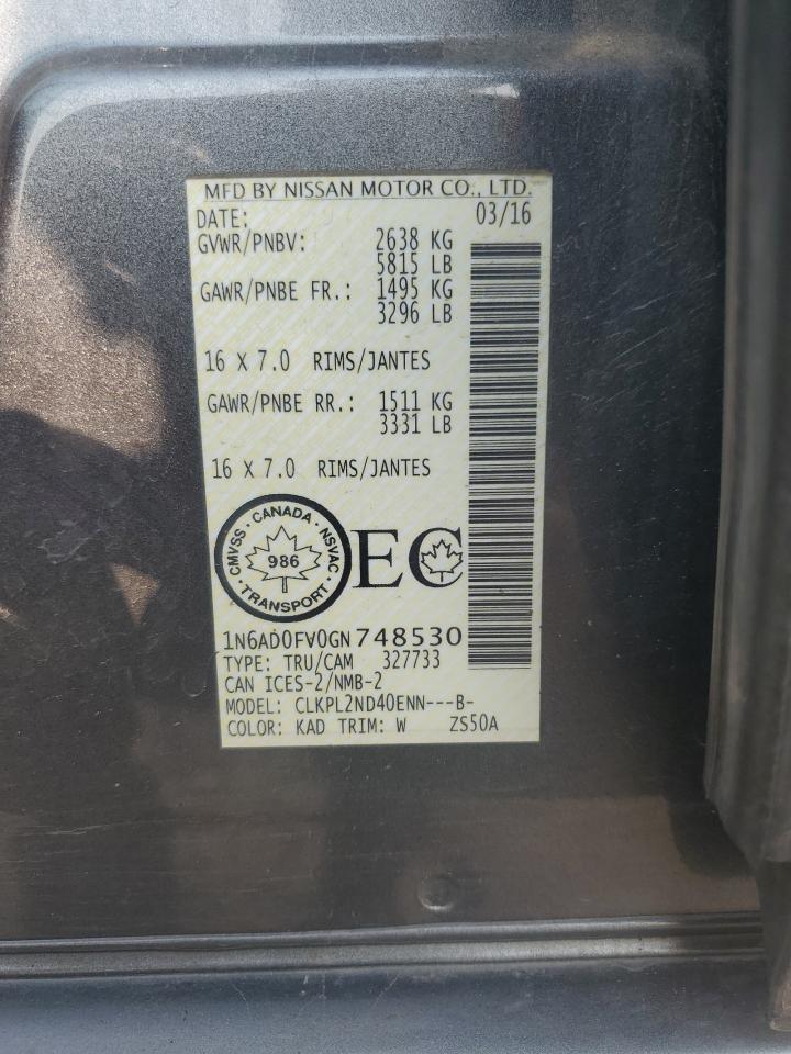 2016 NISSAN FRONTIER 2016 року Бензин, 4.0, 4x4 с задним приводом, vin - 1N6AD0FV0GN748530 из США